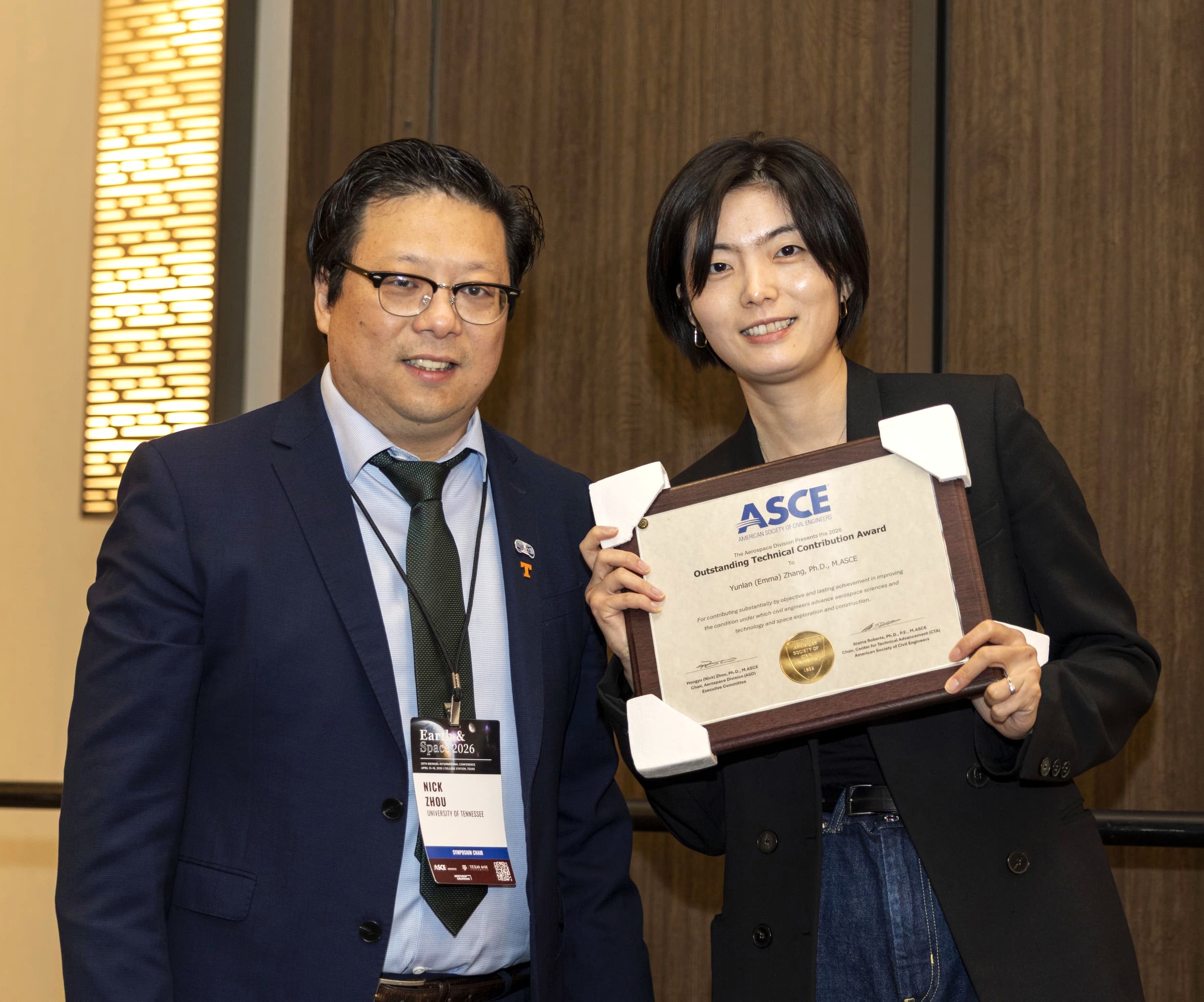 Yunlan Emma Zhang Awarded Outstanding Technical Contribution Award from the Aerospace Division of ASCE